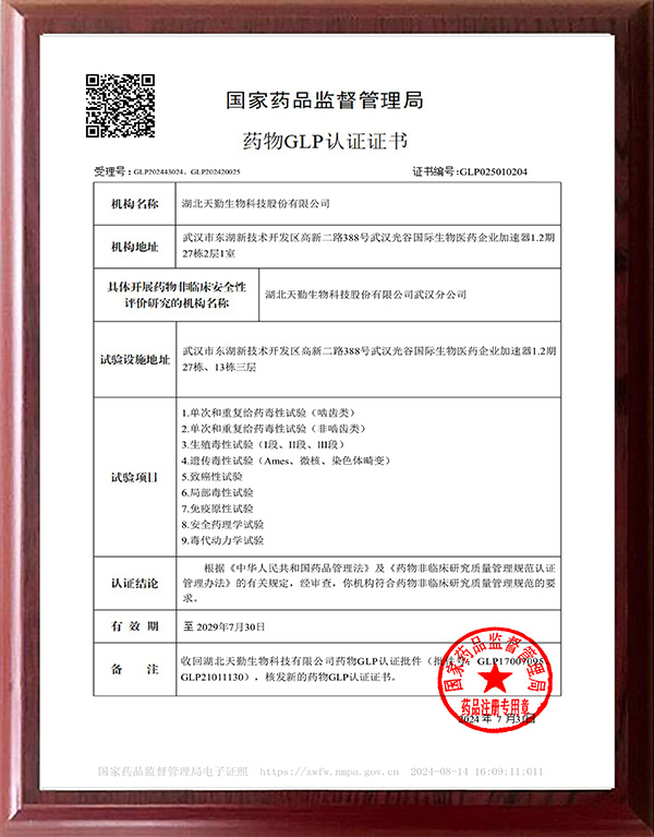 湖北天勤生物科技集團股份有限公司(簡稱天勤生物)成立于2009年,總部位于武漢東湖高新區光谷生物城,是一家以大動物試驗為特色、聚焦新藥研究與評價的CRO高新技術企業。服務涵蓋藥物非臨床安全性評價、非臨床藥效學研究與評價、藥代動力學研究、生物分析、分子影像檢測、醫療器械評價、非人靈長類實驗動物繁育等領域,為客戶提供一站式創新藥物研發服務,以更短的實驗周期、更高質量的研究報告加快新藥上市進程。